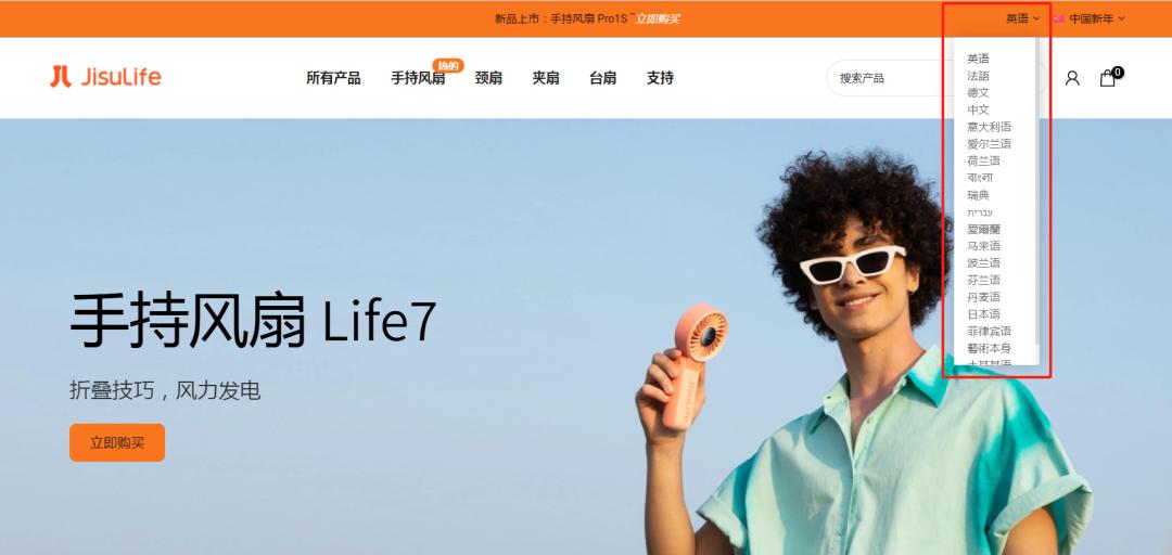 在渠道布局上,JisuLife采取了“線上+線下”雙線并行的策略,構(gòu)建了全方位的銷售矩陣。在線上,JisuLife不僅入駐了亞馬遜、eBay、速賣通等主流跨境電商平臺,還開通了官方獨立站,直接觸達消費者,提升品牌自主性和客戶體驗。在獨立站上,JisuLife將產(chǎn)品分為多個大類,提供多種語言服務,方便不同國家的消費者購買。