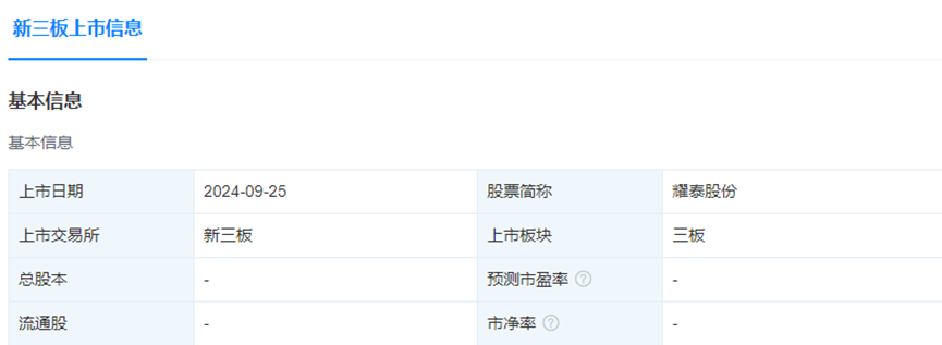 耀泰股份新三板掛牌上市 圖源:天眼查