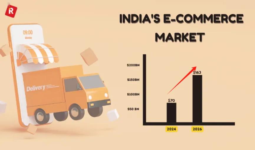 根據(jù)印度品牌權(quán)益基金會(IBEF)發(fā)布的數(shù)據(jù),目前印度電商市場價值已達700億美元,約占零售總額的7%,之后幾年繼續(xù)保持增長,到2026年市場規(guī)模增長至1630億美元。如果發(fā)展順利的話,印度在2034年有望超過美國,成為全球第二大電商市場。