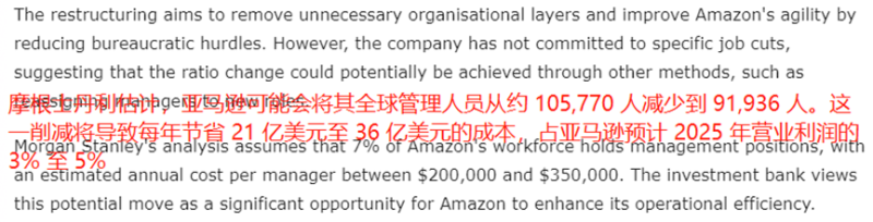 從用人成本來看,此次大裁員預計將為亞馬遜每年節省21億—36億美元,這預計會占到亞馬遜2025年營業利潤的3%—5%。所以可以預見的是,倘若此輪裁員能順利完成,那么亞馬遜的用人成本將能得到比較明顯的下降,這對于亞馬遜提高利潤有重要意義。