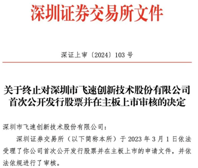飛速創新終止上市審核 圖源:深圳證券交易所
