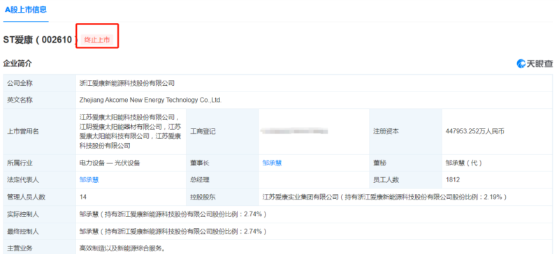 再比如說,今年8月份,華東地區知名的出口大廠浙江愛康新能源科技股份有限公司發布公告,表示其股票已經被深圳證券交易所決定終止上市,轉入退市板塊掛牌轉讓,子公司浙江愛康光電將進入破產重整程序。同一天,寧夏中銀絨業有限公司、天津富通信息科技股份公司也發布公告,稱公司股票將于8月12日被摘牌。