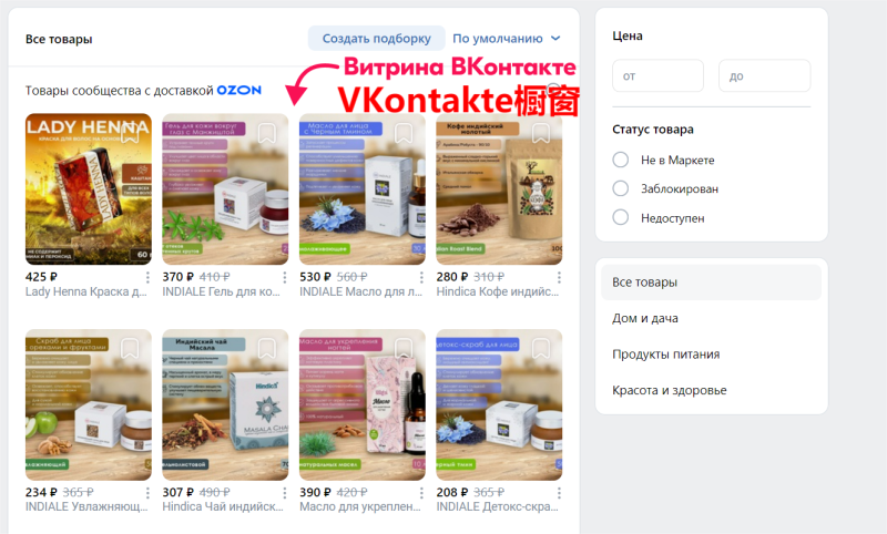 VKontakte櫥窗中的Ozon商品卡片 圖源:seller-edu.ozon.ru?