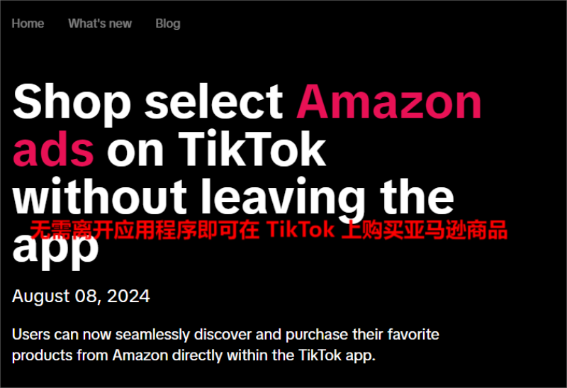 亞馬遜與TikTok合作 圖源:TikTok for Business