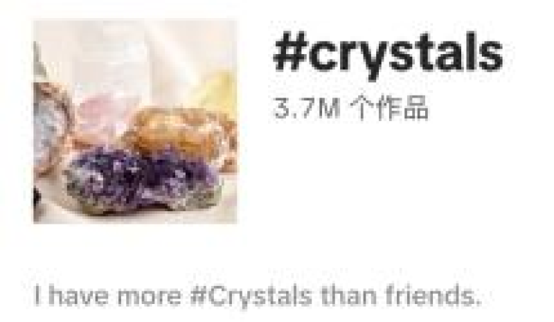 另外,TikTok上#crystals標(biāo)簽相關(guān)有多達(dá)370萬個作品,熱度非常高,或許是由于工作生活中的壓力,很多人也會將水晶視作治愈的“良藥”。只能說,在海外水晶的受歡迎程度,或許比我們想的還要高得多。