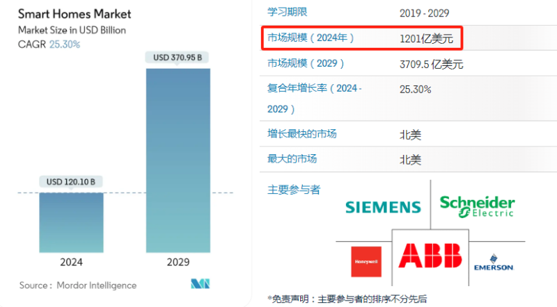 來自Mordor?Intelligence發布的數據顯示,2024年,預計智能家居全球市場規模能夠達到1201億美元,未來還會繼續擴大。事實上,智能家居市場的發展潛力從該領域相關產品的熱賣也能看出?!?024全球智能家居市場深度研究報告》指出,2023年全球智能家居設備的出貨量高達數十億臺,這一數字預計到2024年有望翻倍增長。