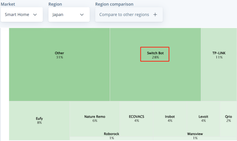 據Statista數據顯示,SwitchBot在日本智能家居市場份額已達到28%,是線上市場的第一大品牌,并在亞馬遜全球多個站點中取得了所屬品類的Best Seller稱號。這一成績的取得,不僅展示了SwitchBot的強大實力,也為中國智能家居品牌出海樹立了新的標桿。