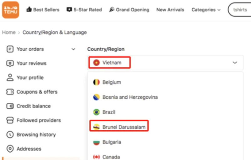 Temu后臺顯示越南和文萊站點 圖源:墨騰創投