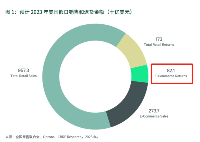 一方面是因為,旺季雖然會帶來了訂單增長,但退貨率相比往常也有所上漲。舉例來說,去年美國的假日購物季,在線零售商就面臨著退貨增加帶來的成本上漲的問題。據供應鏈技術公司Optoro和投資公司CBRE提供的數據顯示,2023年假日季美國在線退貨總額約為820億美元。
