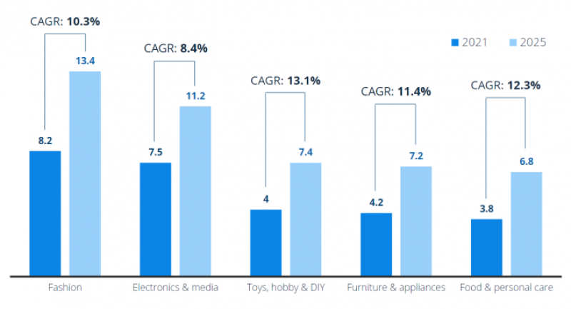 2021年和2025年非洲各行業電子商務收入 圖源:trade