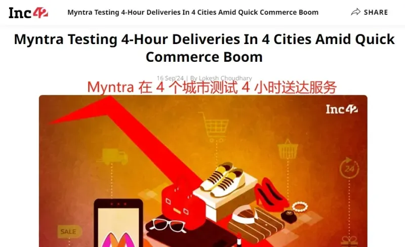 Myntra測試4小時送貨服務 圖源:Inc42