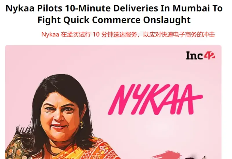 最近,印度時尚電商平臺Nykaa在孟買Borivali地區(qū)啟動了一項10分鐘送貨服務試點計劃,覆蓋其5%的產(chǎn)品種類,以滿足消費者對快商務日益增長的需求,從而應對Blinkit、Zepto、Swiggy Instamart等平臺的競爭。