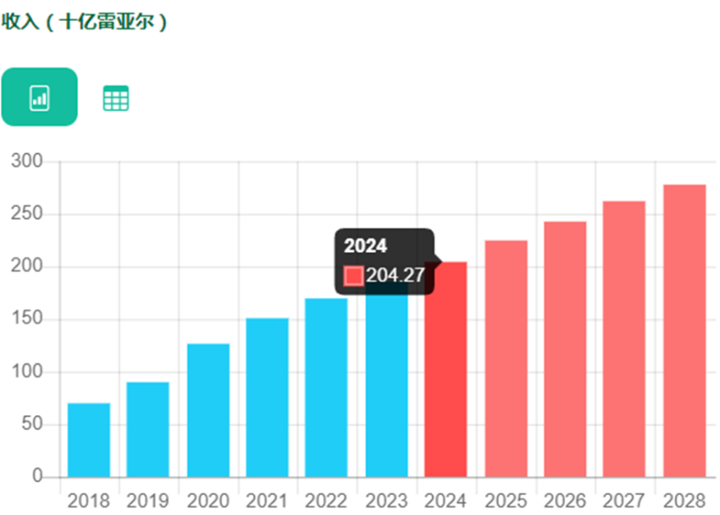所謂“無利不起早”,巴西對Shopee來說也有足夠的吸引力。一方面,巴西是Shopee通往南美市場的“任意門”,戰略意義非凡;另一方面,巴西作為拉美經濟領頭羊,其電商市場的快速增長也引人注目,ABComm提供的數據就指出,2024年,巴西電子商務市場將達到一個新的里程碑,銷售額預計達到驚人的2043億雷亞爾(約合373億美元)。