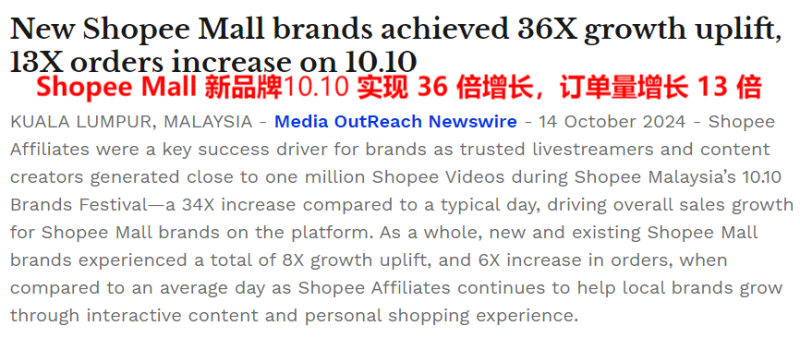Shopee Mall新品牌增長顯著 圖源:MediaOutReach