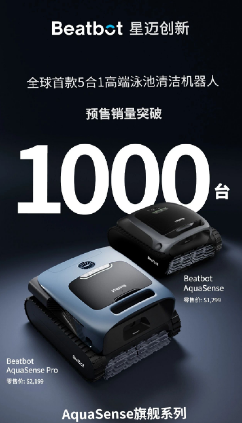 今年2月份,星邁創新旗下的泳池清潔機器人品牌Beatbot發布了首款新品AquaSense系列,其中Pro版定價比行業第一品牌貴3倍,比行業均價貴5倍。然而,這款高價產品卻迅速獲得了市場的認可,上市不到1個月,整體預售銷量已經突破1000臺,上市三個月后銷售額突破1500萬美元。
