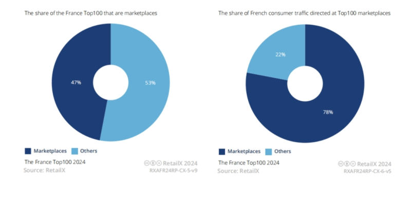 近日,RetailX發布了2024年法國電商市場報告,對法國電商市場的最新狀況進行了分析。從報告中發現,電商平臺在法國的發展十分順利,雖然電商平臺在法國Top100中占比雖然只有47%,吸引的網站流量卻高達78%。