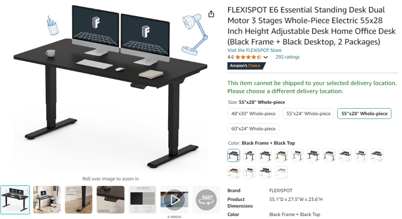 現在,在亞馬遜平臺上,Flexispot的產品線已經擴展到了智能電動床、健身運動椅等智能家居產品;多款升降桌獲得上千條好評,幾款售價較高的升降桌雖留評不多,但也獲得了亞馬遜官方“Amazon’s Choice”的推薦。
