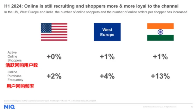 西歐網購用戶數和網購頻率均實現增長 圖源:Nielsen IQ