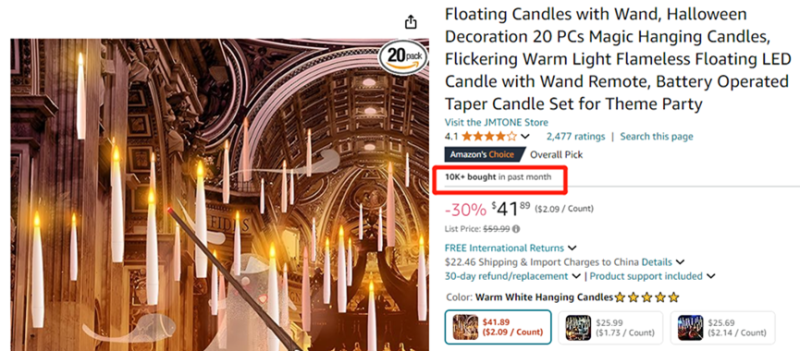 萬圣節(jié)懸浮LED蠟燭在亞馬遜爆單 圖源:亞馬遜
