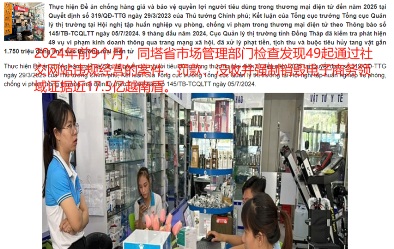 越南大力打擊電商違規經營現象 圖源:dongthap.dms.gov.vn