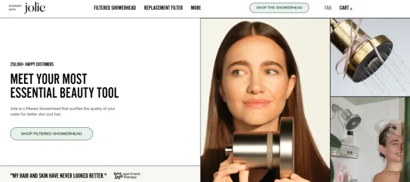 這個想法像一道閃電一樣擊中了他,基于自身皮膚干燥,他意識到水中含有很多化學物質,人們往往花費很多錢去購買面霜和洗面奶上,但根本問題——水,卻沒有得到解決,于是過濾淋浴噴頭品牌Jolie Skin Co.誕生了。