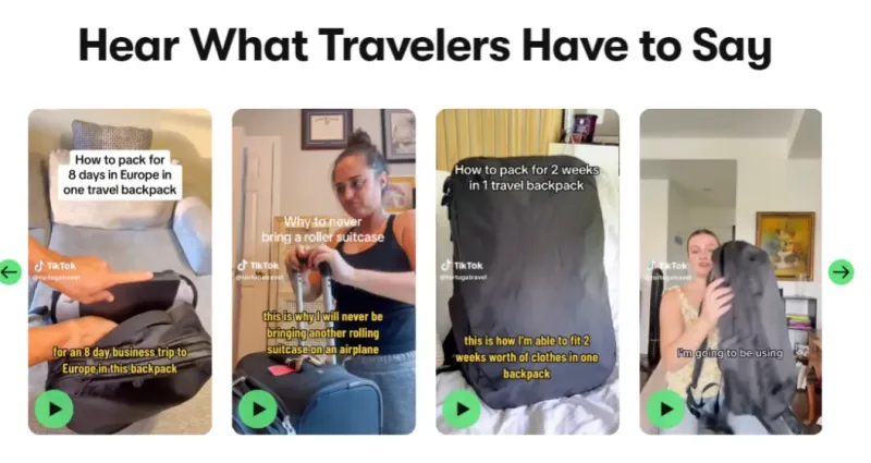 這種策略實際上相當奏效,不少品牌也采取了類似的營銷方式。例如知名旅行背包品牌Tortuga的核心用戶定位是那些深度背包客和旅行博主。于是Tortuga和各類旅行博主合作,讓他們在視頻中分享自己的使用體驗,從而帶動其他用戶的好感度。