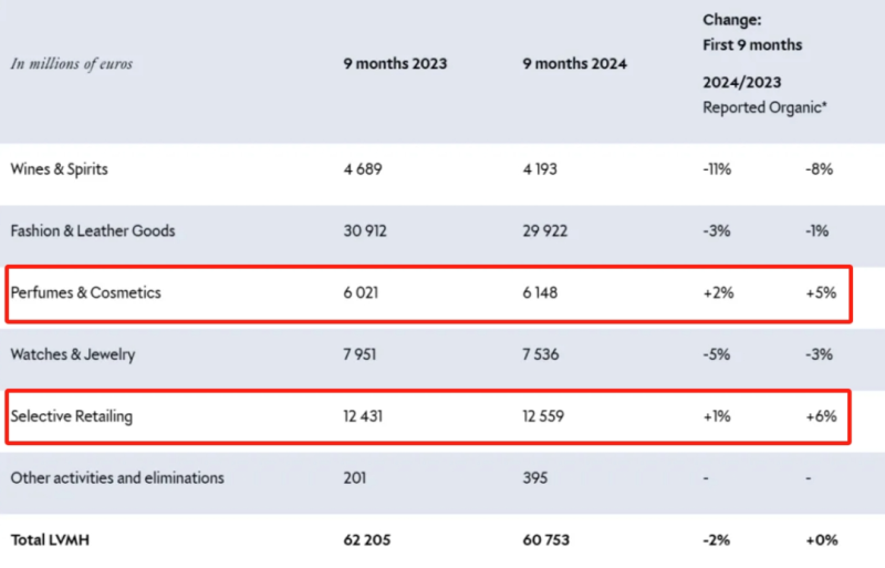 部分業(yè)務(wù)板塊正向增長(zhǎng) 圖源:LVMH財(cái)報(bào)