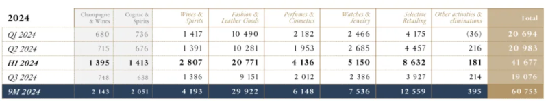 第三季度銷售收入190億歐元 圖源:LVMH財(cái)報(bào)