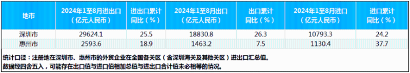 深圳今年前8個月進出口總額 圖源:深圳海關