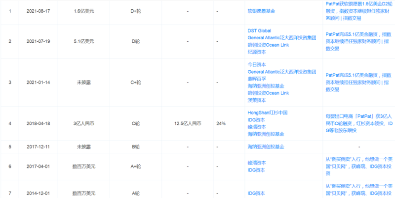 PatPat融資歷程 圖源:天眼查