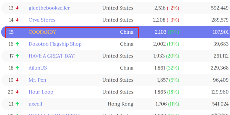 Coofandy排名第十五 圖源:Marketplace Pulse