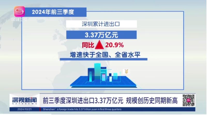 近日,深圳海關發布了2024年前三季度深圳進出口數據,數據顯示,深圳在這一時期內的進出口總額達到了3.37萬億元,同比增長超過兩成,再次刷新了歷史同期紀錄。這一數據反映了深圳作為全國乃至全球重要貿易城市的強勁實力。