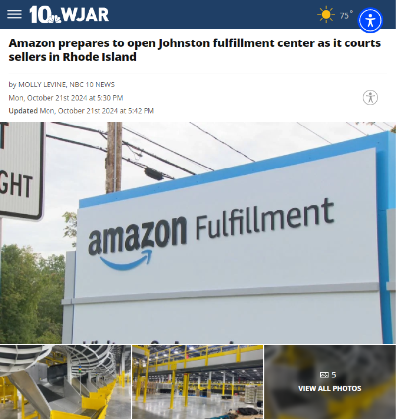 10月22日消息,亞馬遜位于美國羅德島州約翰斯頓的新配送中心預計將于2024年假日季正式開始運營。隨著配送中心的準備工作繼續推進,亞馬遜正在進行建筑填充、機器測試以及產品配送等各個階段的工作。這個項目經過多年籌備,開啟運營后,亞馬遜在羅德島州的物流能力將大幅提升。