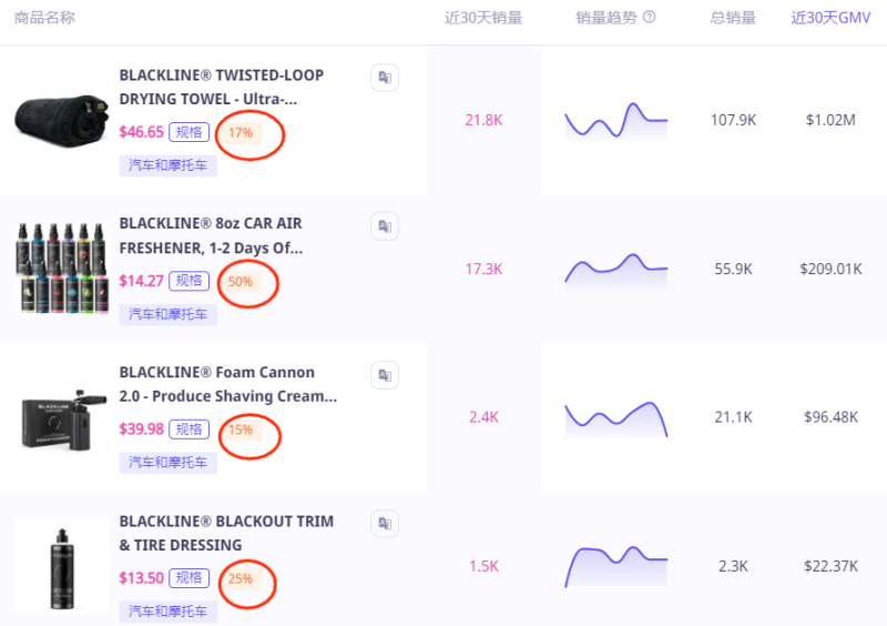 目前,這家小店已經上架30款與汽車保養類相關產品,但大多數都是車用空氣清新劑;店鋪銷售業績也基本是由速干毛巾和空氣清新劑兩款產品貢獻;其累計銷量已經突破22萬件,預估總銷售額超770萬美元。