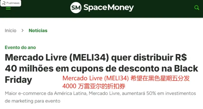 比如說美客多,其宣布將在今年黑五期間增加50%的營銷投入,發(fā)放超過4000萬雷亞爾的折扣券。美客多發(fā)言人對此表示,“平臺4個月的銷售額已經(jīng)相當(dāng)于去年黑五的銷售額了,因此我們對根據(jù)消費者需求和期望進行調(diào)整的更有前景的場景充滿信心”。