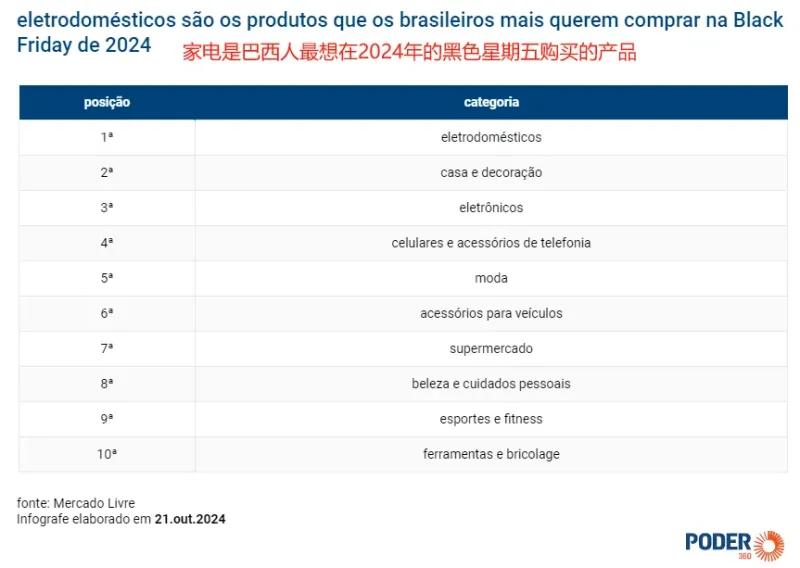 熱門購買品類排名 圖源:poder360