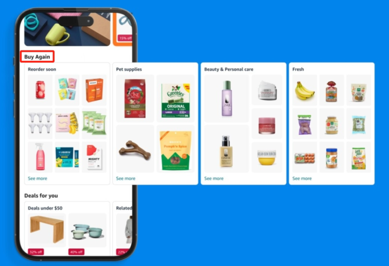 詳細來看,亞馬遜正在通過人工智能、機器學習技術增強主頁個性化推薦,根據用戶最近的瀏覽、購買歷史,有針對性地推薦可能感興趣的產品。舉例來說,如果消費者最近購買了一條新被子,主頁可能會展示相關的枕頭、被套、床單等用品。
