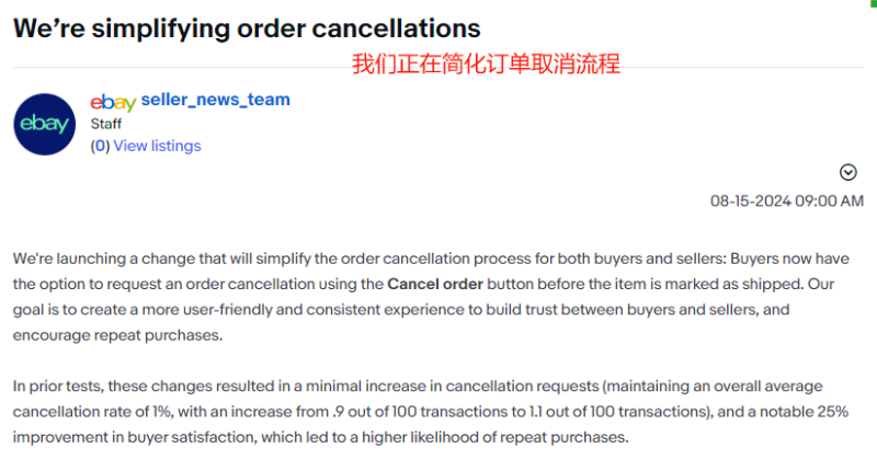 此前,eBay就表示將簡化買家和賣家的訂單取消流程:從8月28日起,消費者可以在商品被標記為“已發貨”之前取消訂單,與此同時,賣家也將有3天時間來接受或拒絕請求。在買賣家接受“取消訂單”的請求后,平臺將根據費用抵免政策向消費者全額退款,大大簡化訂單取消流程。