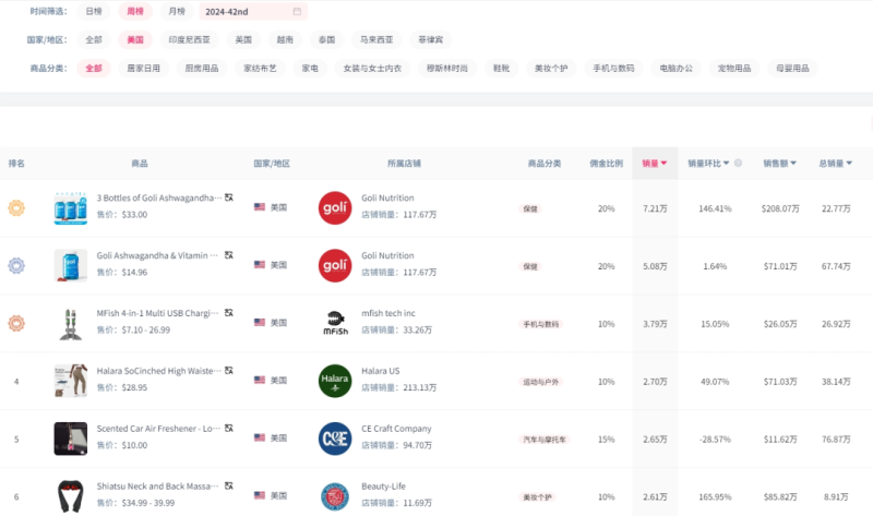 日前,一款電動按摩儀沖上美國熱銷商品榜單前列,并且銷量還呈現(xiàn)上漲的趨勢。詳細來看,該按摩儀在今年1月中旬上線,在近一周中(10月13日至10月19日),其銷量增長了165.95%,而在過去28天中,該產(chǎn)品在美國的美妝個護、個護電器、按摩器類目銷量榜中排行第一,售出了6.45萬件。