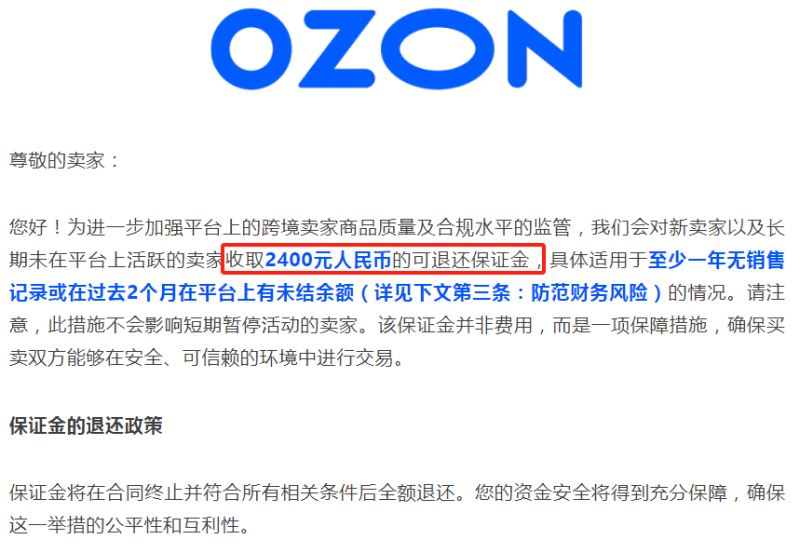 文章來源于互聯(lián)網(wǎng):Ozon上線保證金政策,每個(gè)店鋪收取2400元