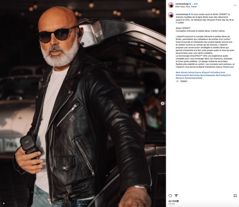 Shokz商務耳機宣傳大使 圖源:Instagram