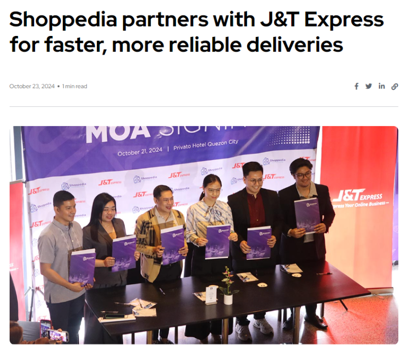 最近,菲律賓電商新秀Shoppedia宣布,已與東南亞物流巨頭J&T Express達成合作,雙方已經簽署了諒解備忘錄,準備在菲律賓市場攜手并進。