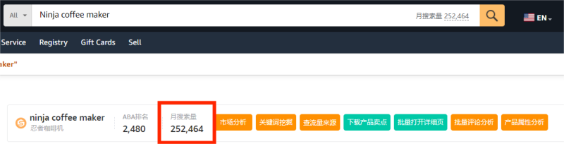 Ninja咖啡機搜索量達25萬 圖源:SellerSprite
