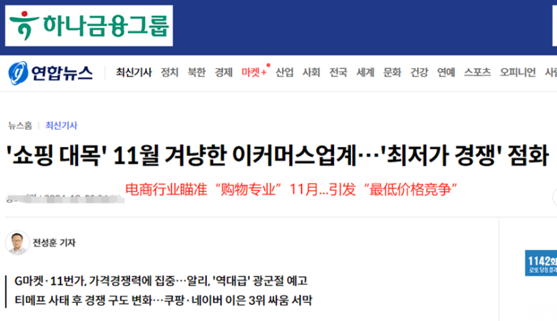 韓國電商平臺內(nèi)卷低價 圖源:yna