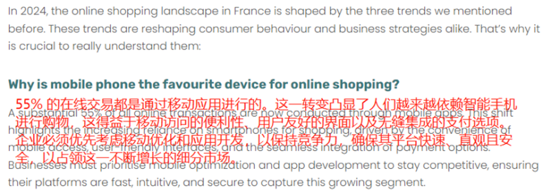 首先是移動購物的風行。Gaasly的研究指出,得益于“移動訪問的便利性、用戶友好的界面以及無縫集成的支付選項”,法國消費者越來越喜歡通過手機進行網購。當前,超過半數(55%)的在線交易都是在移動應用上進行的。這意味著零售商們需要做好應用開發和移動優化,以迎合消費者的購物偏好。