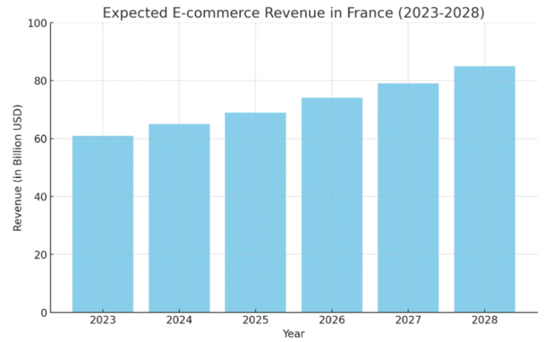 近日,據媒體報道,數字營銷機構Gaasly公布了一份名為《2024年法國在線購物趨勢指南》的研究報告。報告顯示,法國電商市場正在以穩定的速度增長著,預計2024年該國電商總收入會達到650億美元。未來五年,這一市場還將繼續增長下去,預計復合年增長率為6%。到2029年時,這一市場的總收入將有望達到870億美元。