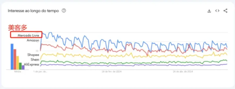 美客多以壓倒性的優勢再次霸榜巴西電商流量排行榜,足以可見其發展實力。另外Google Trends的數據也證明了這一點:在今年上半年,美客多是巴西地區Google搜索量最多的電商平臺,其中“美客多優惠券”一度成為高達100分的熱門搜索詞條。