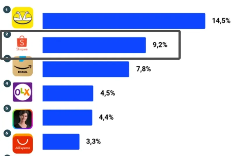 以今年6月份的數據為例,當時Shopee以超過2.3億次訪問量、占據9.2%的的市場份額,一舉超過亞馬遜成為巴西第二大電商平臺。到了7月份,亞馬遜又以8.6%的份額反超8.1%的Shopee,來到了第二名的位置。