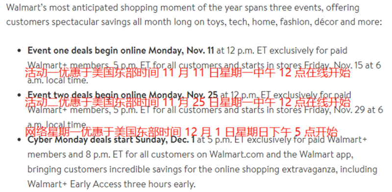 具體而言,從11月11日中午12點開始,首場大促會最先對Walmart+會員開放,下午5點開始則面向所有用戶開放,并于當地時間11月15日上午6點在實體店推出活動。