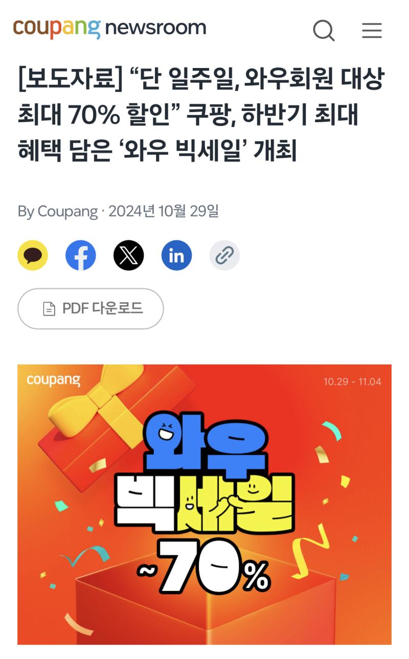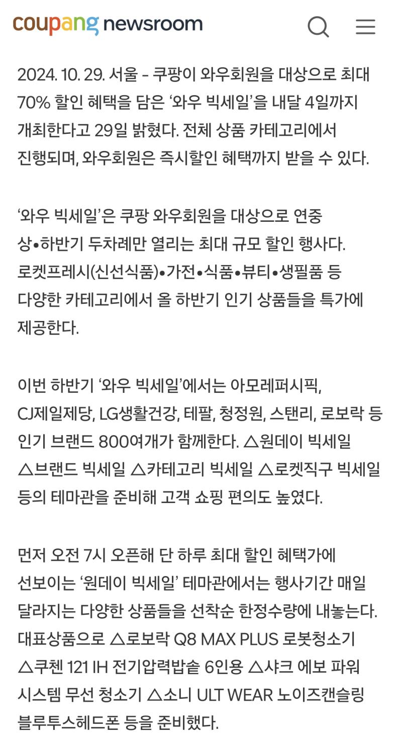 文章來源于互聯網:Coupang開啟下半年最大折扣活動“Wow Big Sale”